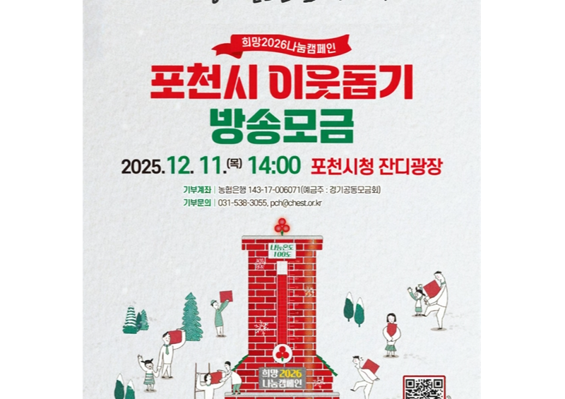포천시(시장 백영현)는 복지사각지대를 해소하고 안정적인 복지재원 마련을 위해 ‘행복을 더하는 기부, 기부로 바꾸는 포천’을 주제로 「희망2026 나눔 캠페인 포천시 이웃돕기 방송모금」 행사를 개최한다.
